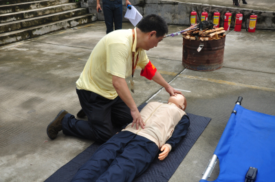 教練示范緊急救人方法