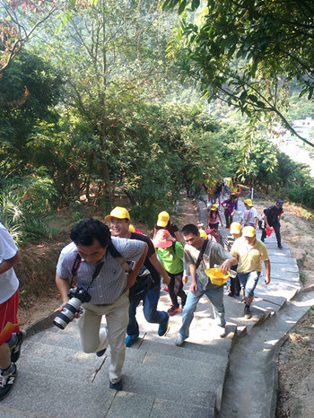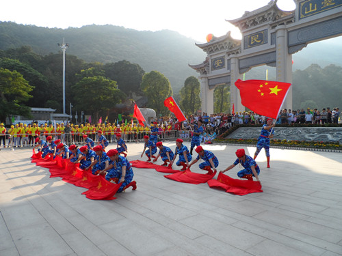 看完一系列精彩專業(yè)的表演來(lái)到羊臺(tái)山參加活動(dòng)的人們都一直連連拍手叫好,看著聲勢(shì)浩大的表演讓我們著實(shí)振奮人心,看完專業(yè)表演后,我們各自背上背上行囊舉著公司旗幟,像山頂前進(jìn)。