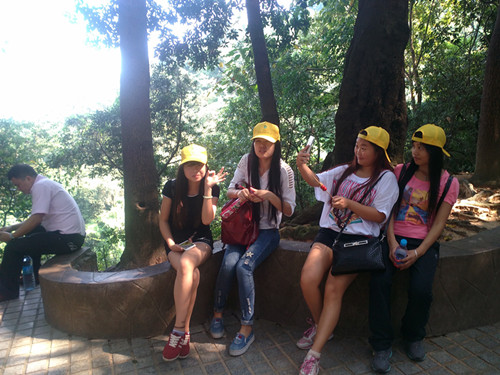(進(jìn)入羊臺(tái)山石巖廣場(chǎng),集體合影留念)
